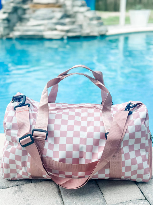 Pink Checkered Duffle Bag