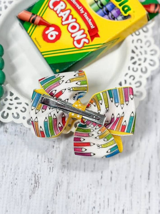 School Books and Pencils Yellow Hair Bow